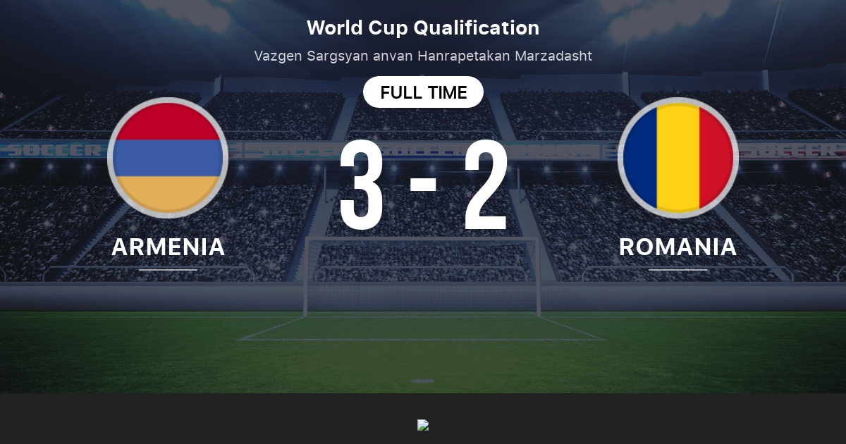 Armenia host romania at the vazgen sargsyan republican stadium in yerevan on wednesday in the 2022 fifa world cup qualifiers. Match ends Armenia 3 Romania 2. Armenia 3-2-Romania Spertsyan 56 Haroyan 87 Barseghyan 89 p.